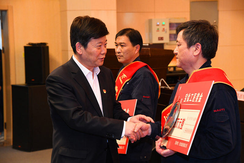 王文生在講話中首先代表公司黨政向辛勤工作在各個(gè)崗位上的廣大職工致以節(jié)日的問候!向命名表彰的“寶鈦工匠”、獲得先進(jìn)榮譽(yù)的集體和個(gè)人表示祝賀。王文生指出,過去一年,我們經(jīng)受住了疫情考驗(yàn),在嚴(yán)峻的形勢(shì)下實(shí)現(xiàn)逆勢(shì)增長,“十三五”圓滿收官。今年以來,公司繼續(xù)乘勢(shì)而上,保持了生產(chǎn)經(jīng)營良好的增長態(tài)勢(shì)。這些成績的取得,是公司深化改革的結(jié)果,也是公司上下團(tuán)結(jié)一心、努力拼搏的結(jié)果,更是源于各位先進(jìn)代表和技術(shù)能手大力弘揚(yáng)勞模精神、勞動(dòng)精神、工匠精神,在各自崗位上拼搏奮斗,用干勁、闖勁、鉆勁鼓舞更多的人,為公司發(fā)展持續(xù)激發(fā)出的磅礴偉力。